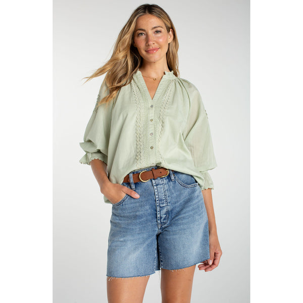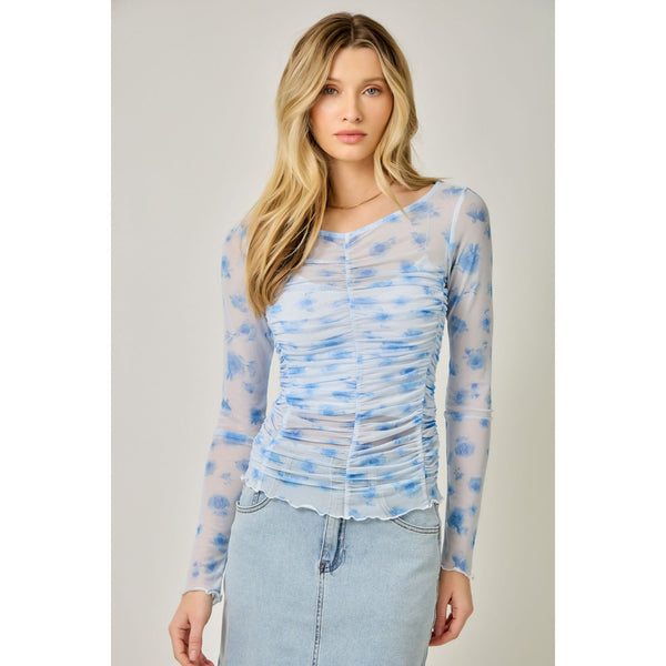 Blue Lettuce Hem Mesh Top