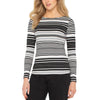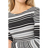 Long Sleeve Boat Neck Knit Top in Black White Stripe