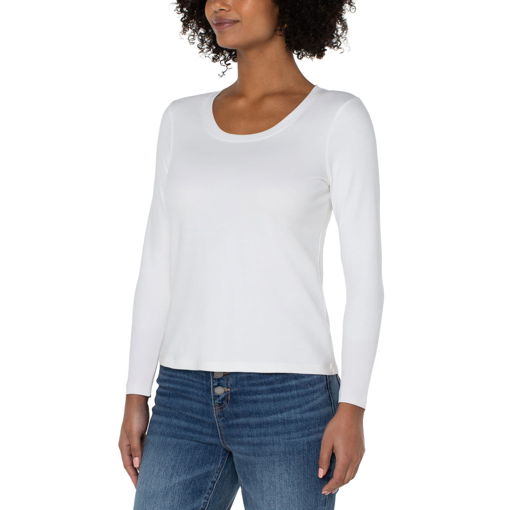 This versatile long sleeve knit top features a graceful scoop neck and elegant silhouette that effortlessly transitions from casual to polished. The luxuriously soft fabric blend offers gentle stretch for all-day comfort and movement, making it the perfect wardrobe staple you'll love wearing season after season.