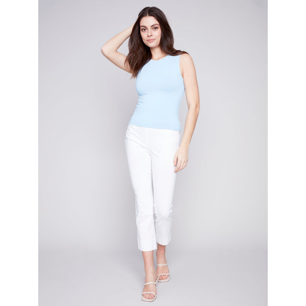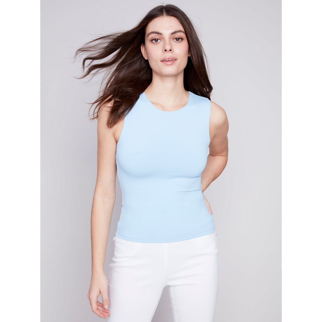 Add some style and comfort to your wardrobe with our Sleeveless Super Stretch Top. Made with soft and stretchy fabric and lined, this top will hug your body in all the right places. With a crew neckline and a variety of colors to choose from, this versatile top is a must-have!