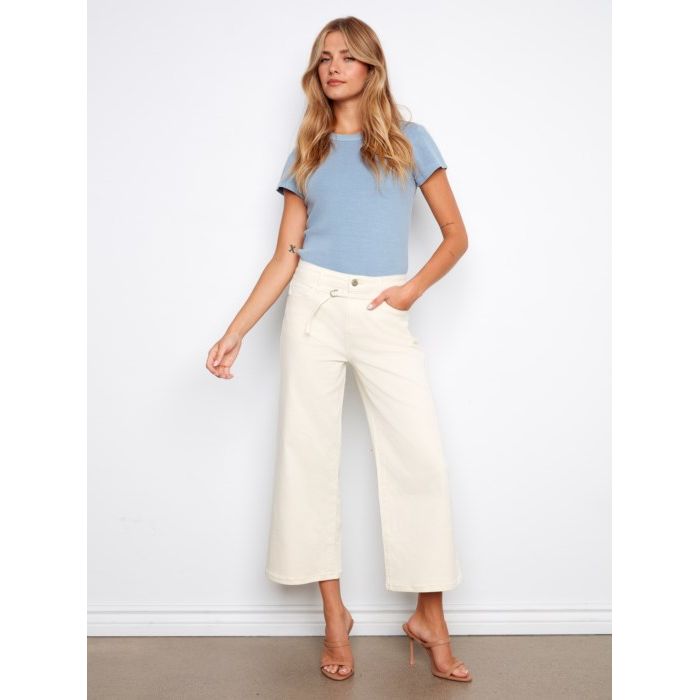Embrace a bold silhouette with these wide-leg twill jeans that hit right at the ankle for an effortlessly cool vibe. The regular rise sits comfortably at your natural waist, while the included belt lets you cinch and customize your fit. Five functional pockets keep your essentials close, and the button closure ensures everything stays secure. Perfect for dressing up or down, these cropped beauties bring serious style to any outfit.
