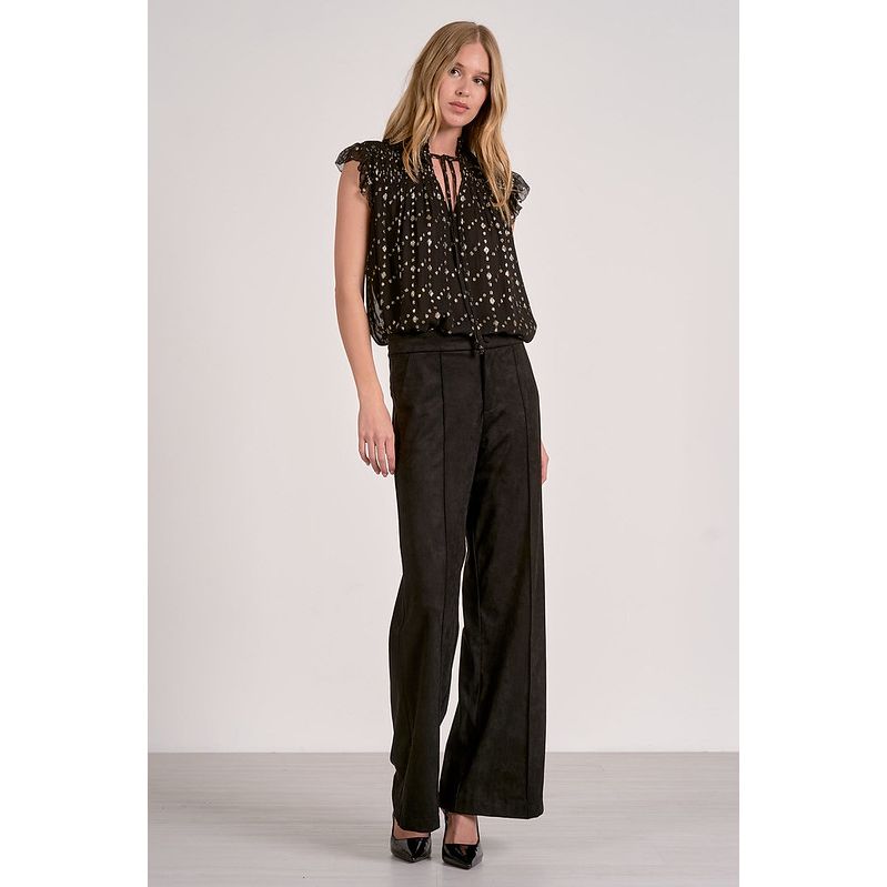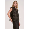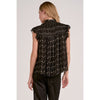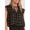 Black Flutter Sleeve Blouse with Gold Geo Print