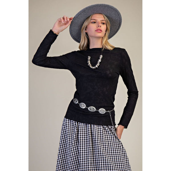 Long Sleeve Button Front Woven Shirt in Black & Gold Combo