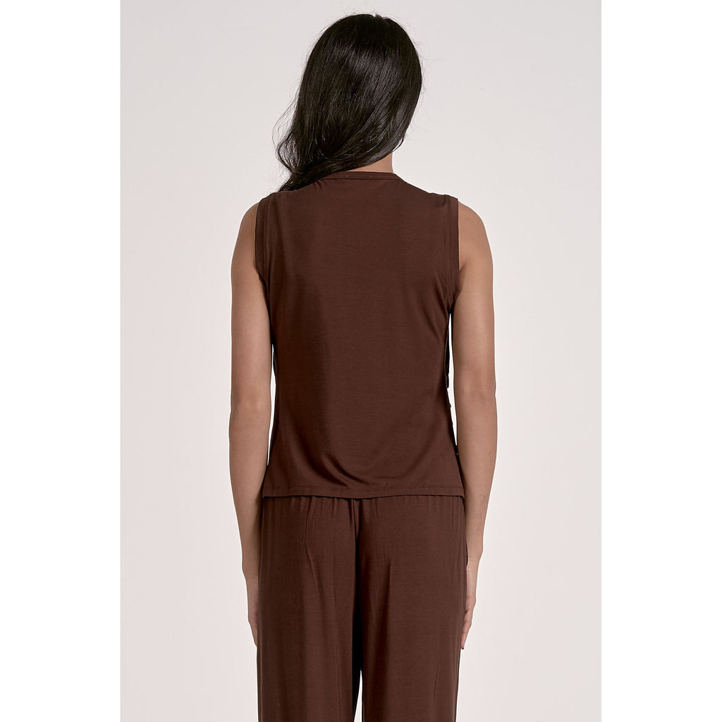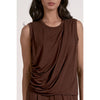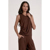 This sleeveless tank features a crew neckline and a charming layered look with ruching on one side that creates a lovely drape. Its lightweight, soft, and stretchy fabric hugs your figure in all the right ways. Perfectly fun and flirty, it's an ideal match for the coordinating Wide Leg Pull On Pants.