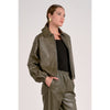 The Oakley Bomber in pine green is your playful pick for fall layering. With its stunning color and shiny coated finish, this zip-up effortlessly raises the style game of your sweatpants, jeans, or wide-leg pants.