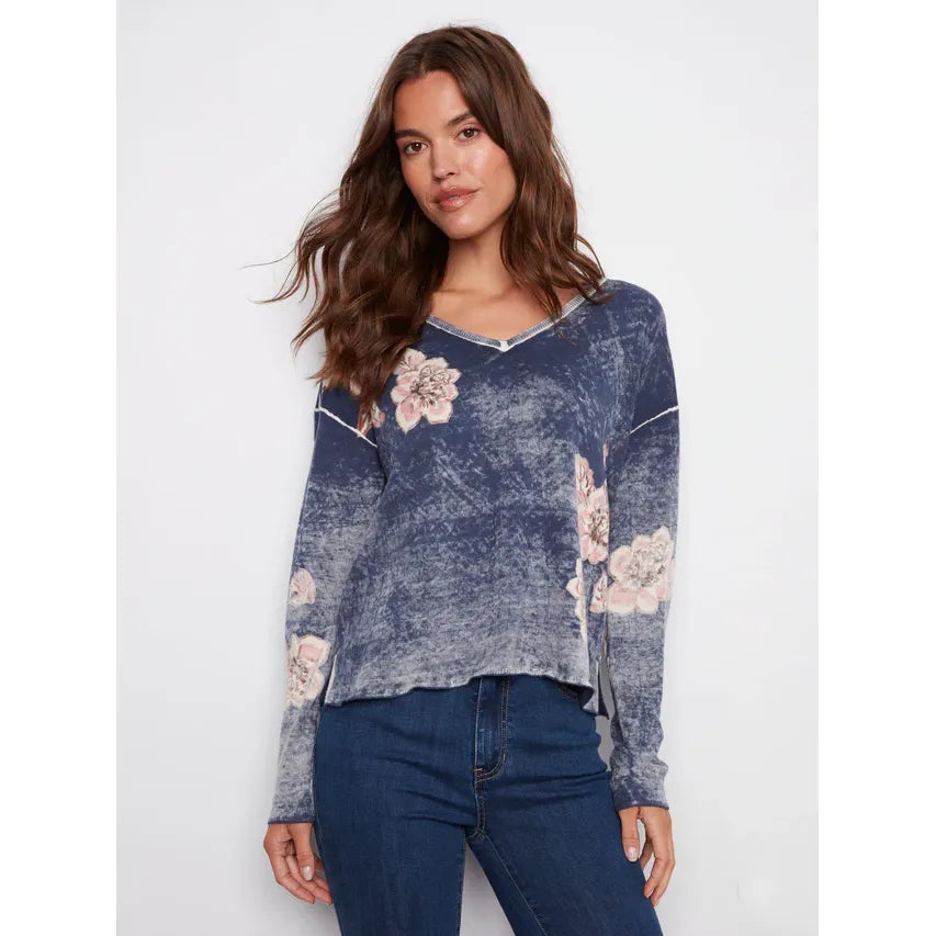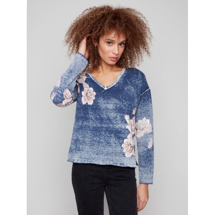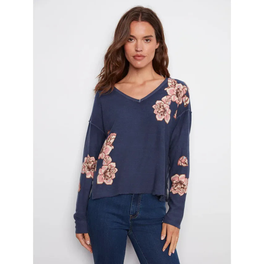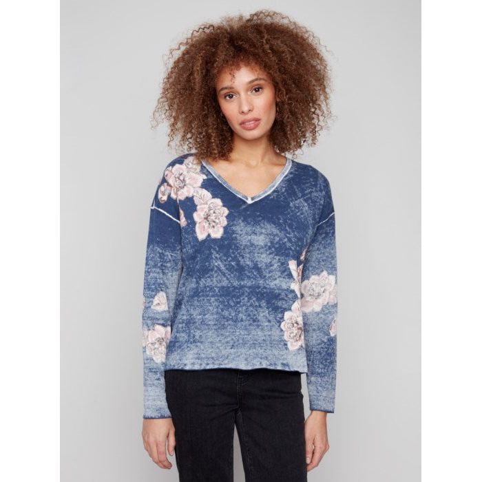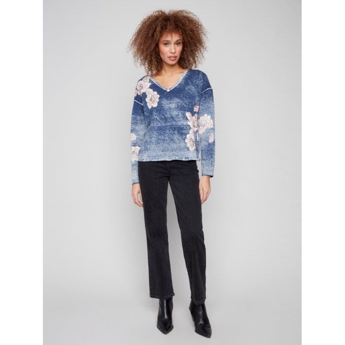 Reversible Floral V-Neck Sweater