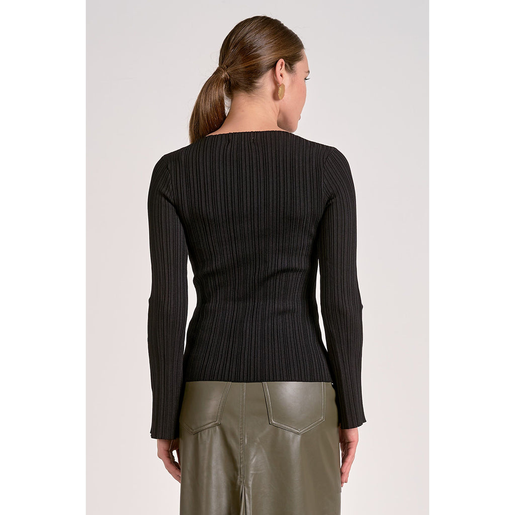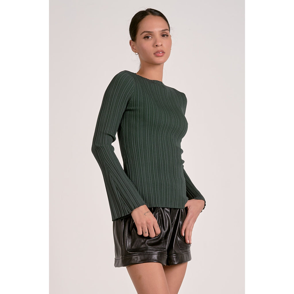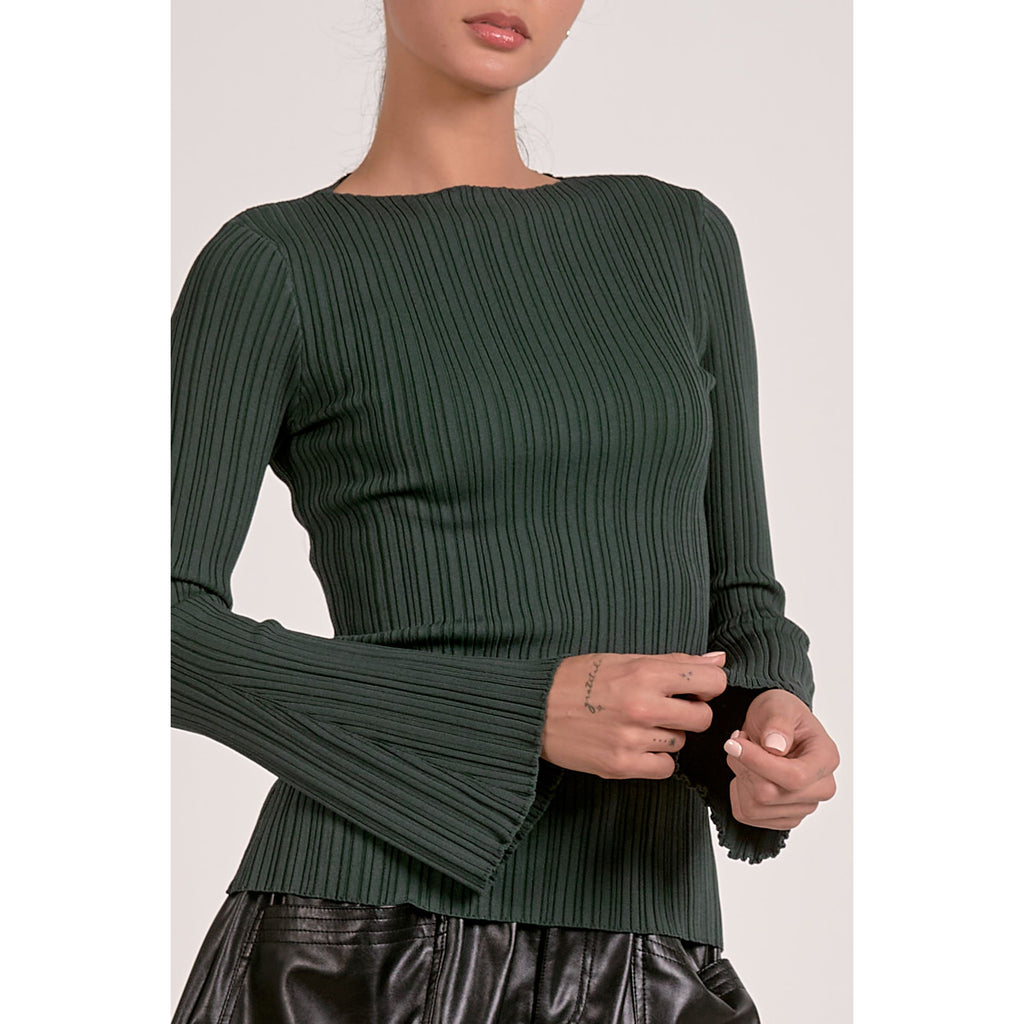 Ribbed Knit Top with Flare Sleeves