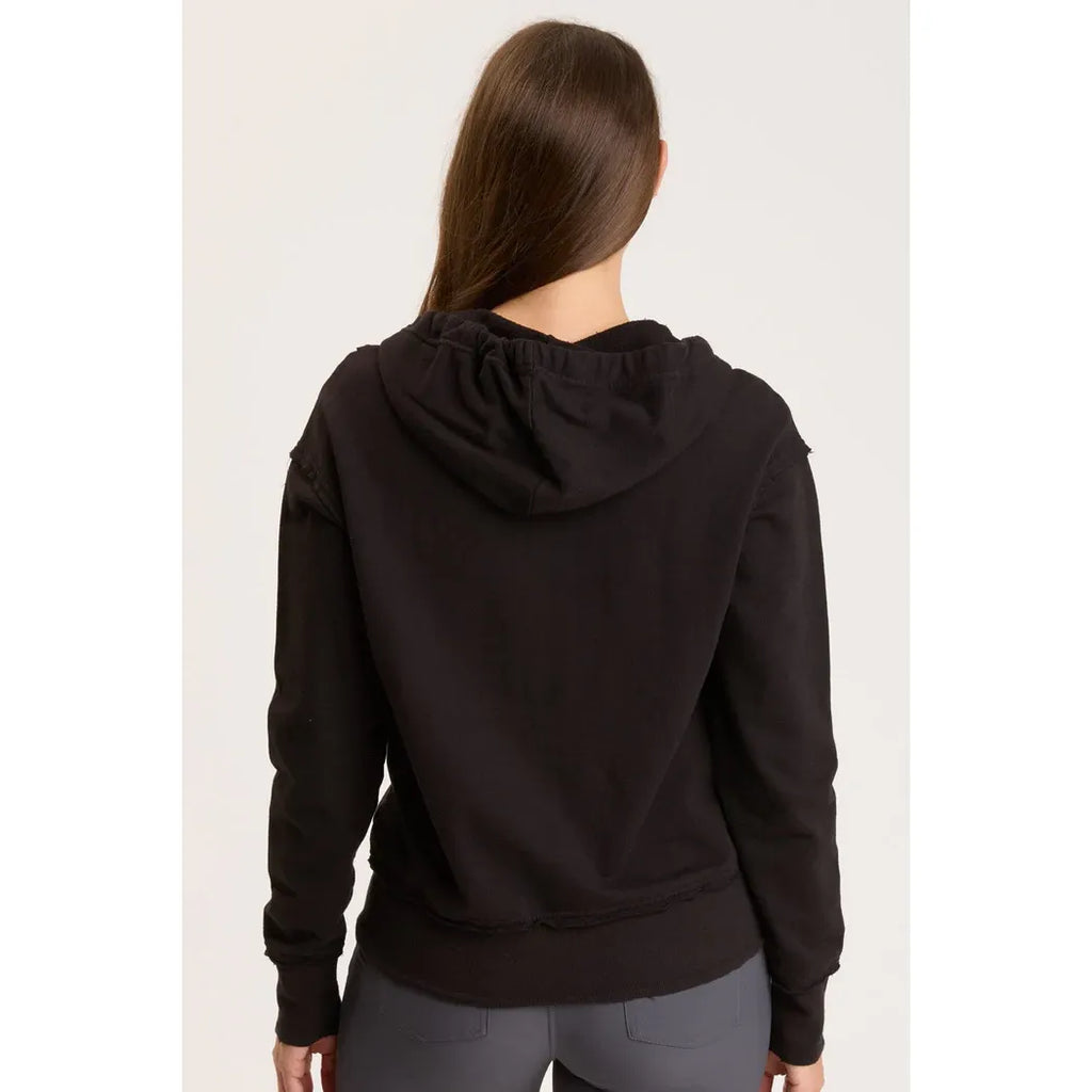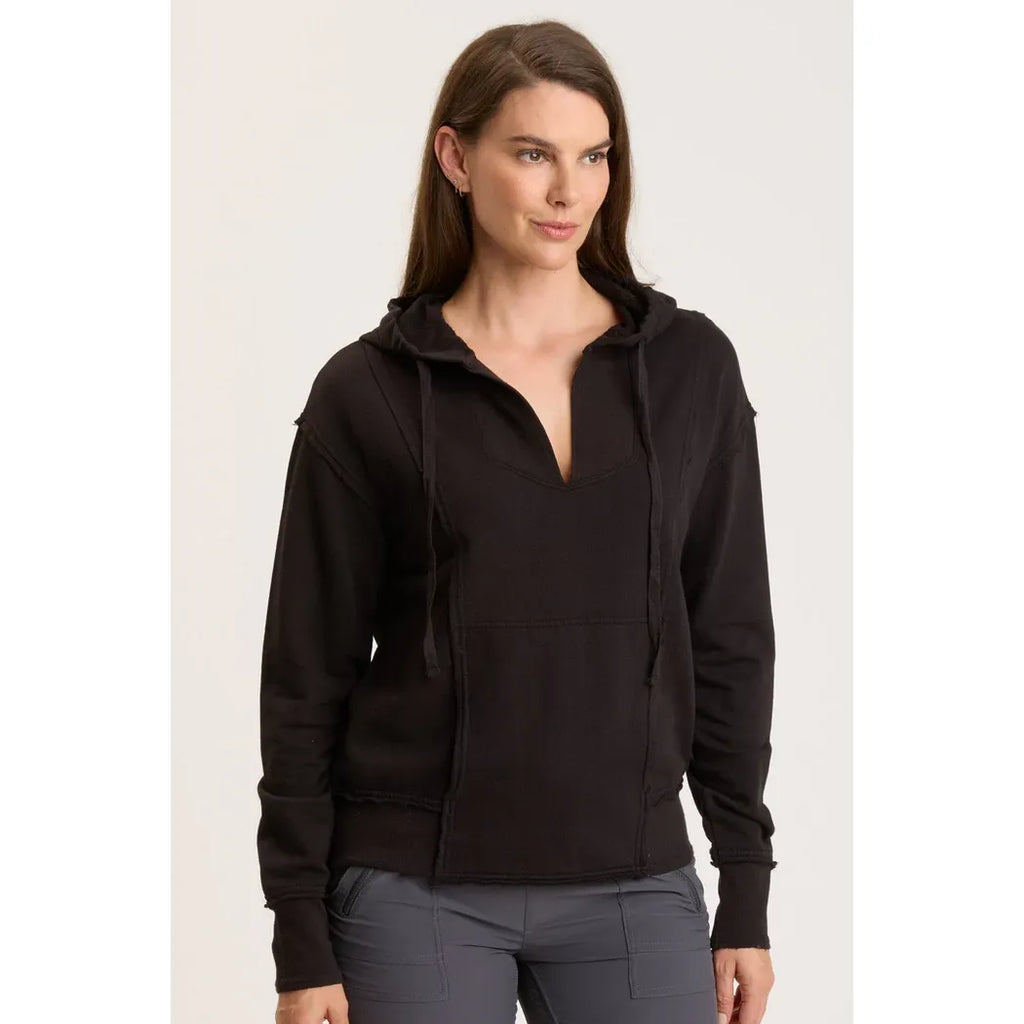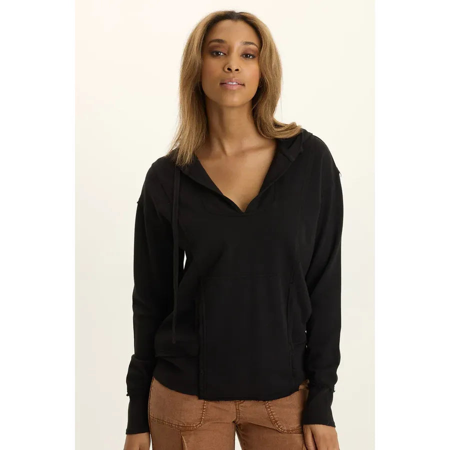 With its edgy raw hems and bold ribbed contrast, the Rosalyn Hoodie in Black is designed to steal the spotlight. Featuring a classic kangaroo pocket and sleek seams that flatter your figure, this hoodie is set to become your go-to style statement.