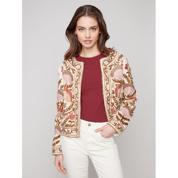 Embroidered Open Front Jacket