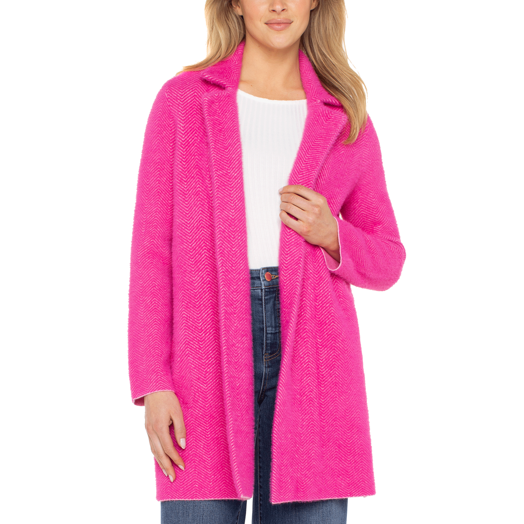 This open-front coatigan blends snug comfort with chic style effortlessly. With its double notch collar and streamlined seam pockets, it’s a breeze to throw on over your go-to sweaters, jeans, or dressier looks—ready to be your go-to for cozy, cute days.