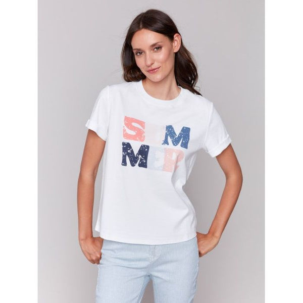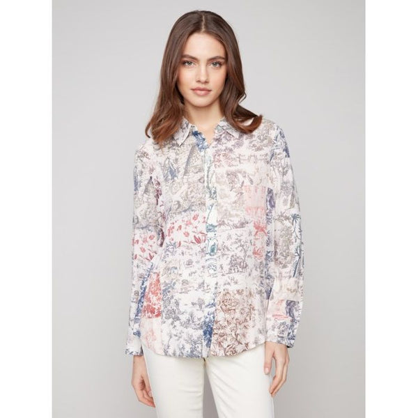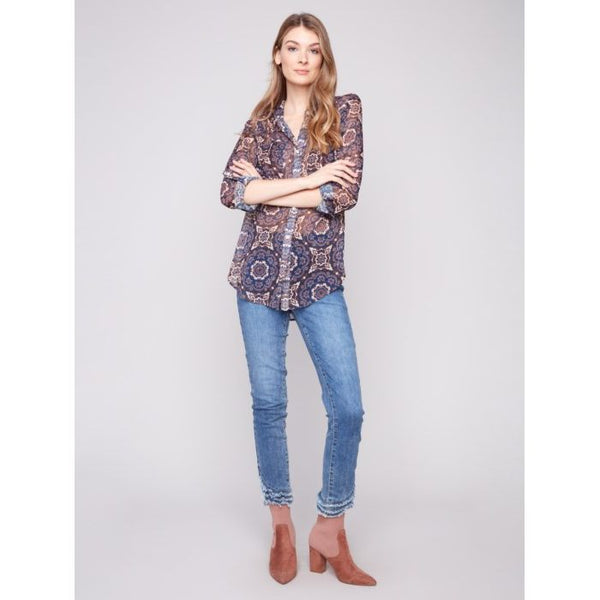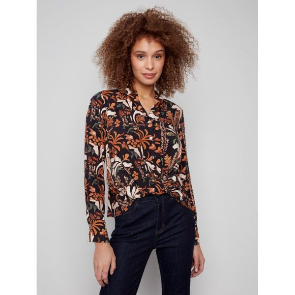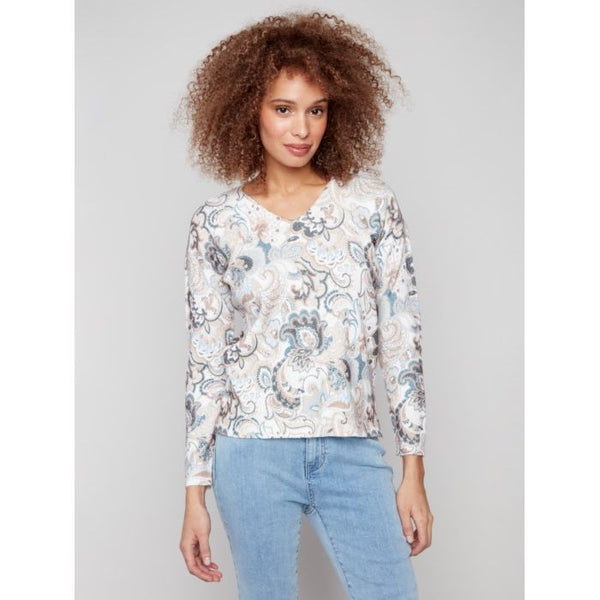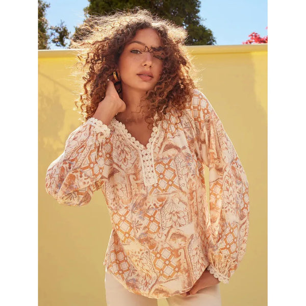 'Papaya' Printed Raglan Blouse with V-Notch Neckline