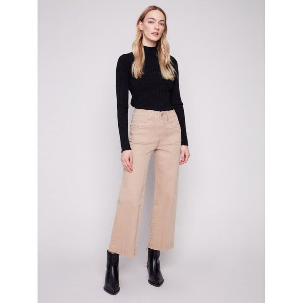 Cropped Wide Leg Stretch Twill Pants