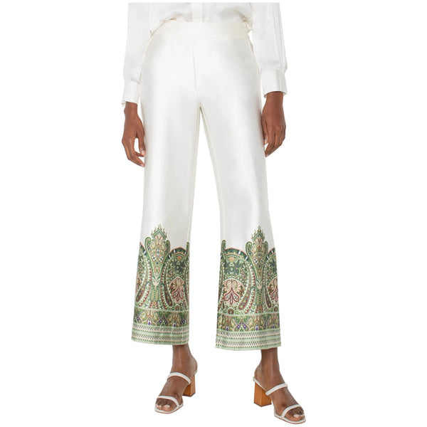 Pull-On Wide Leg Pants in Cream Olive Paisley Print