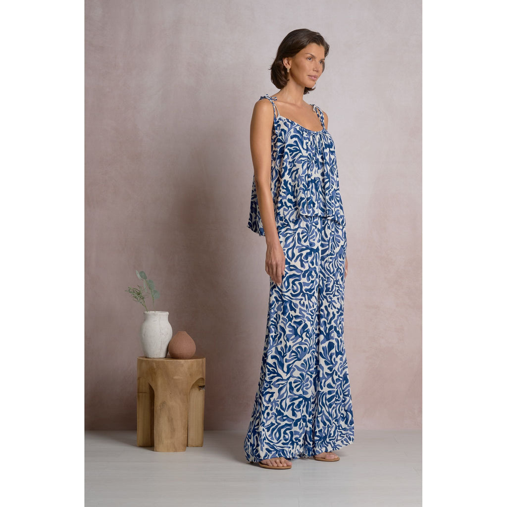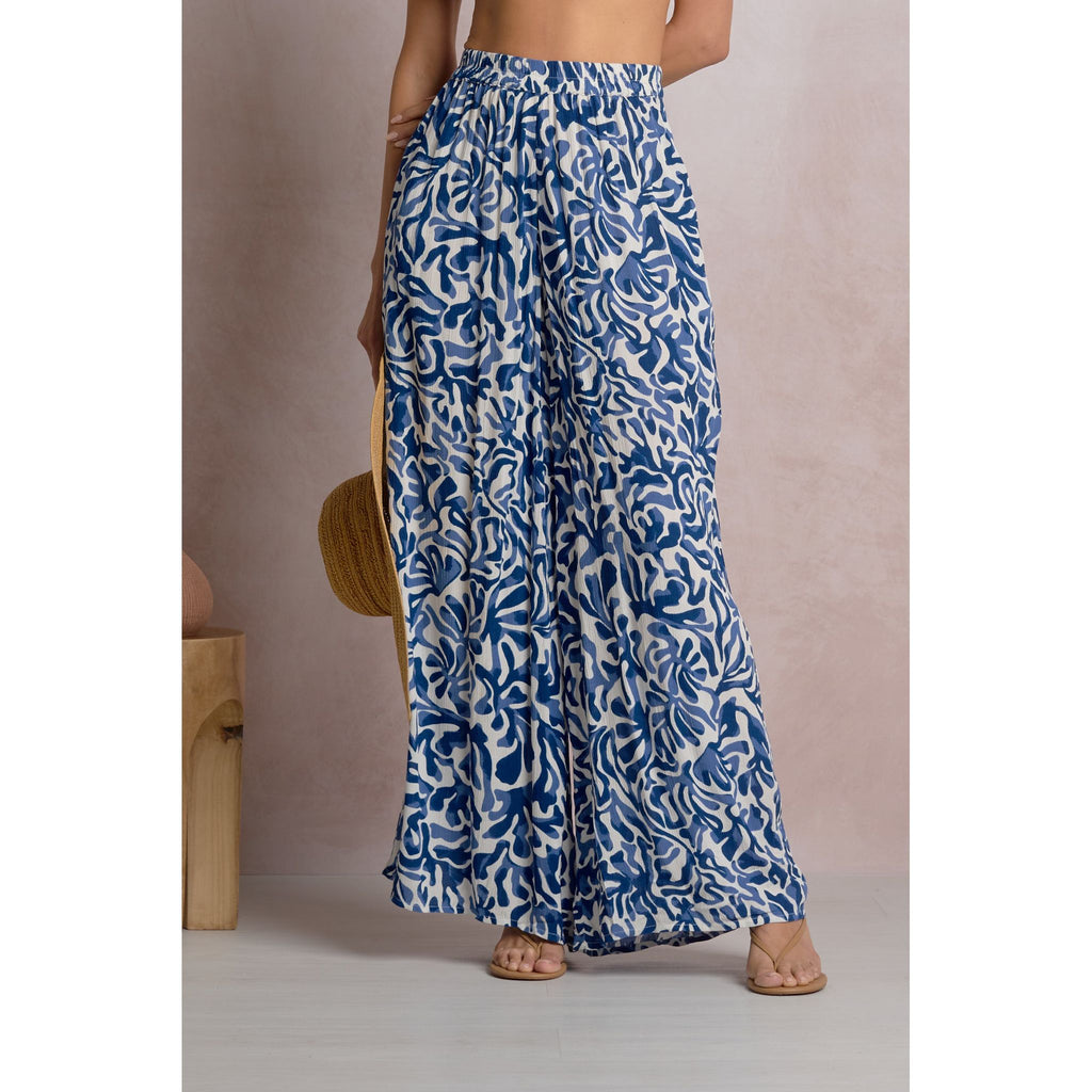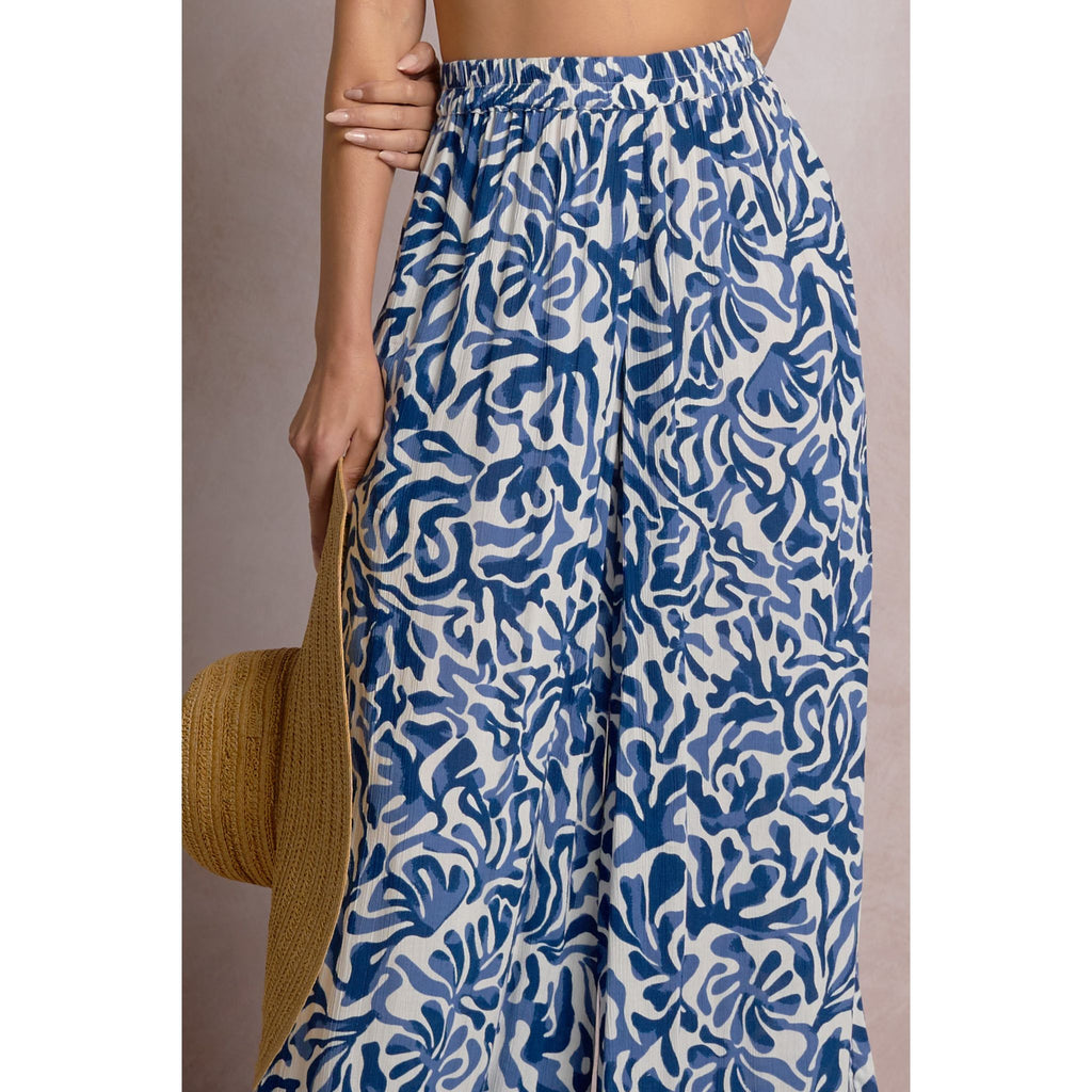 Slip into effortless style with these stunning Blue Coralina Flowy Pants! The eye-catching abstract print makes a bold statement, while the elastic waistband and side pockets keep things comfy and practical. Crafted from beautifully draping crepe fabric, these wide-leg wonders move with you all day long. Pro tip: Pair them with the matching Blue Coralina Spaghetti Strap Top to create an absolutely show-stopping ensemble!