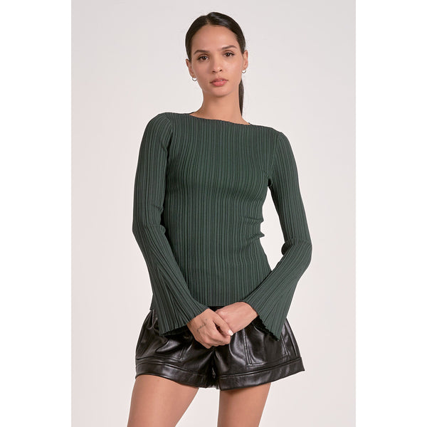 Ribbed Knit Top with Flare Sleeves