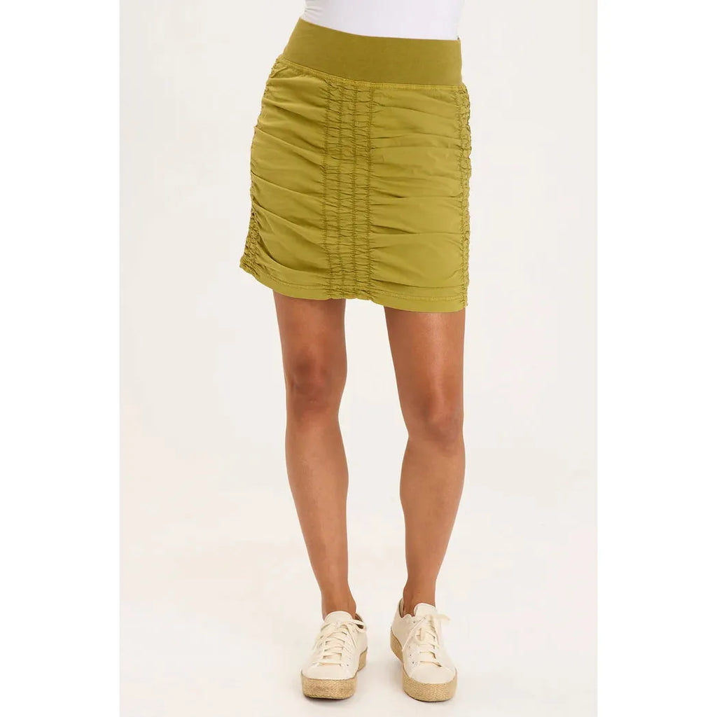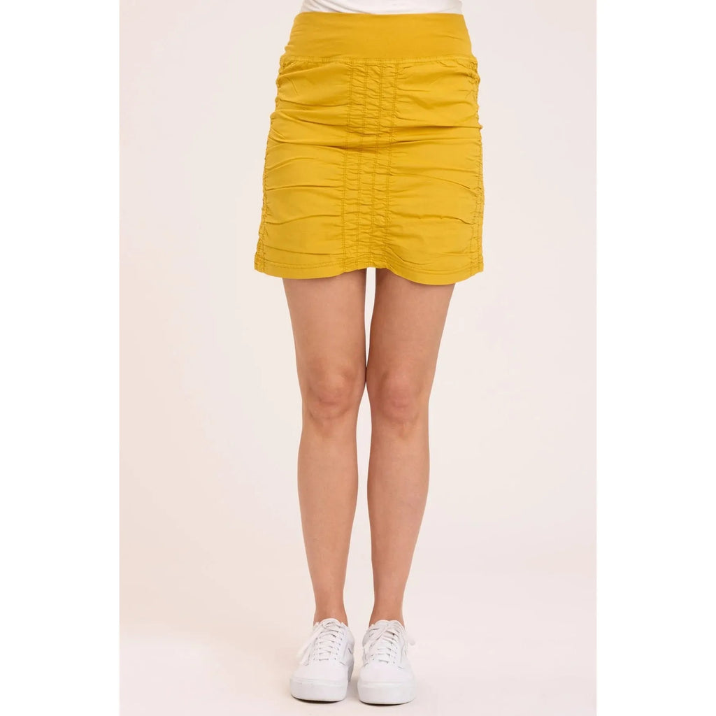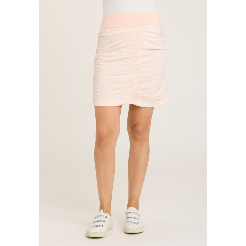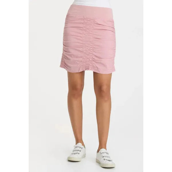 Just slide it on and go! Sporty style skirt featuring a pull on jersey waistband and ruching at sides, front and back for a flattering look. Nothing says cool and comfort like cotton/spandex.  You will want one in every color!
