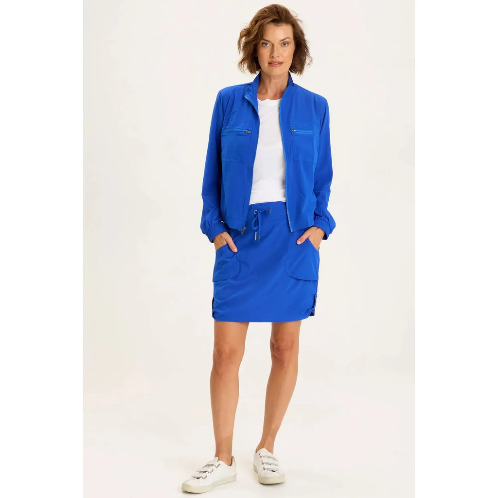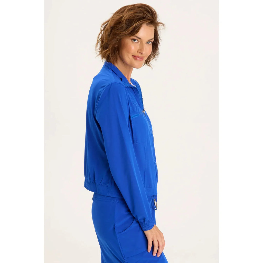 Elevate your bomber game with the Active Quinn Bomber. No fluff, just a clean cut design that's easy and cool like a breeze through the trees. The ruched hem and cuffs add a touch of style to this essential update. Great for travel, that cruise, or everyday! Try it with the matching Jett Skort or the Aksana Leggings.