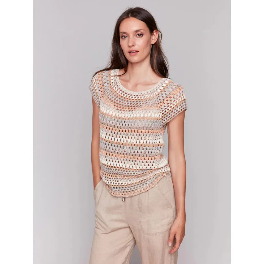 The Crochet Cap Sleeve Top adds a touch of artistry to your wardrobe. Made of breathable fabric perfect for hot days, its stripes give it a playful flair. This relaxed and easygoing top is a must-have for the spring and summer seasons. Pairs fabulously with the Pull-On Linen Blend Wide Leg Pants - Biscuit Tan!