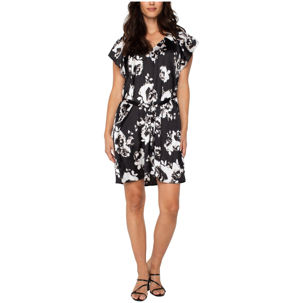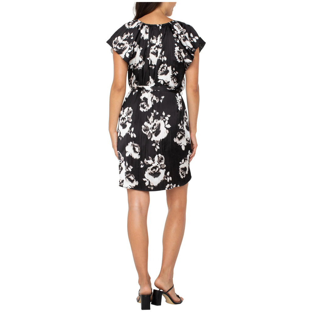 This beautiful flutter-sleeve dress is a fabulous piece for running errands or a night out on the town! Throw on a denim jacket and you're good to go!
