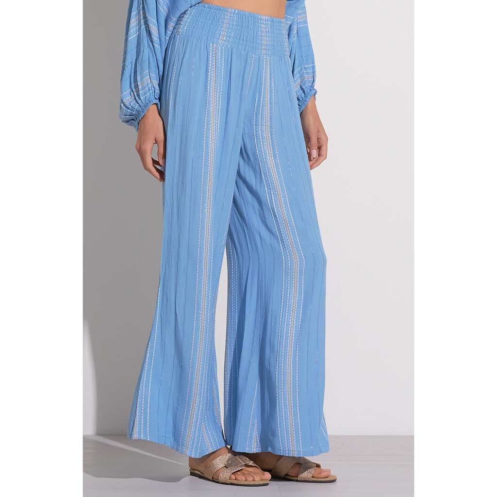 Blue Lilac Stripe Wide Leg Pant with Smocked Waist