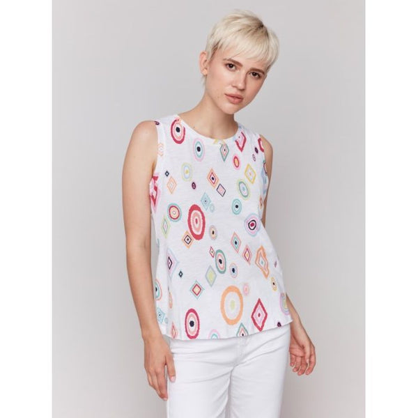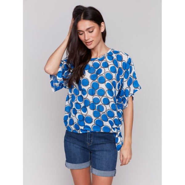 Tennis Print Cotton Gauze Blouse with Side Tie