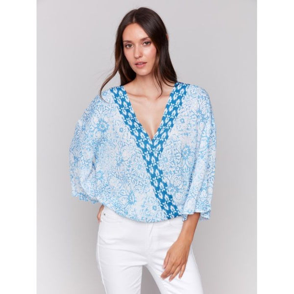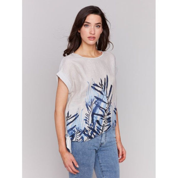 Pull-On Wide Leg Pants in Cream Olive Paisley Print