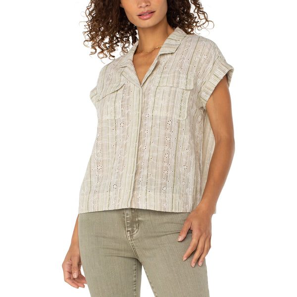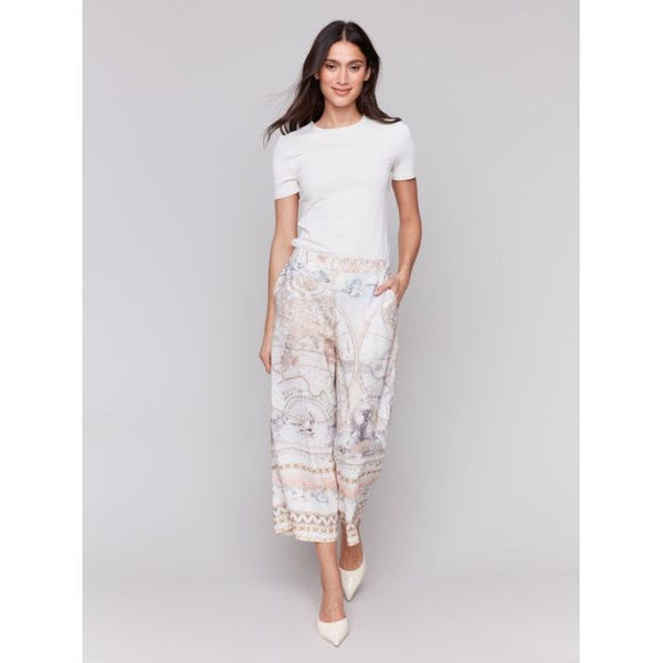 Printed Linen Blend Cropped Pull-On Pants - Atlas