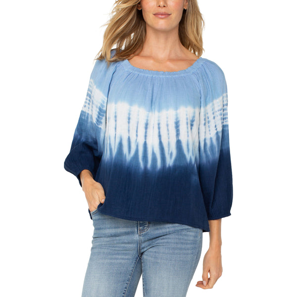 3/4 Sleeve Boat Neck Woven Top