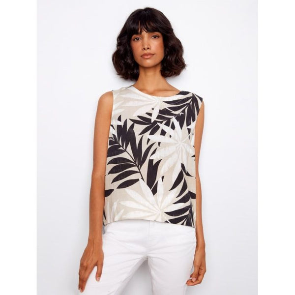 Striped Shell Top w/ Button Back