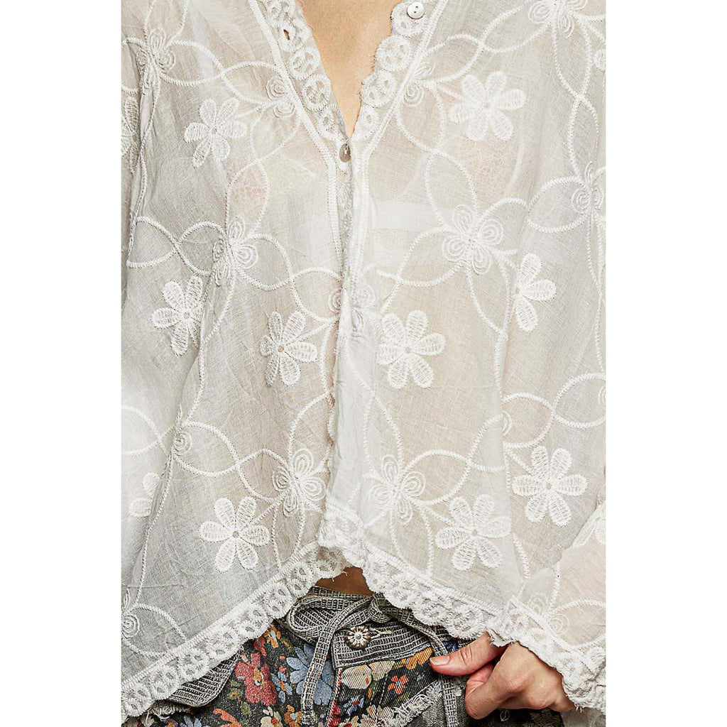 Perfect layering piece for the spring and summer seasons, this boho embroidered hoodie top blends airy comfort with romantic charm. Crafted from lightweight linen fabric with delicate floral embroidery, it features a hooded design, button-down front, and lace-trim edges for a soft, feminine finish. The sheer texture adds a breezy feel that’s perfect for layering over camis, bralettes, or summer dresses — effortlessly completing your warm-weather boho look.