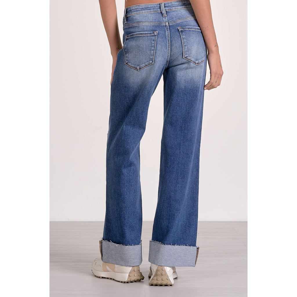 Elevate your denim game with these wide-leg wonders that nail the casual-cool aesthetic. The signature rolled cuff adds personality while the structured fit keeps things polished—throw them on with a fitted tee, an oversized blazer, or your favorite knit and you've got instant style. Versatile enough for weekend errands or coffee dates, these jeans are your new go-to for that relaxed-but-put-together look.
