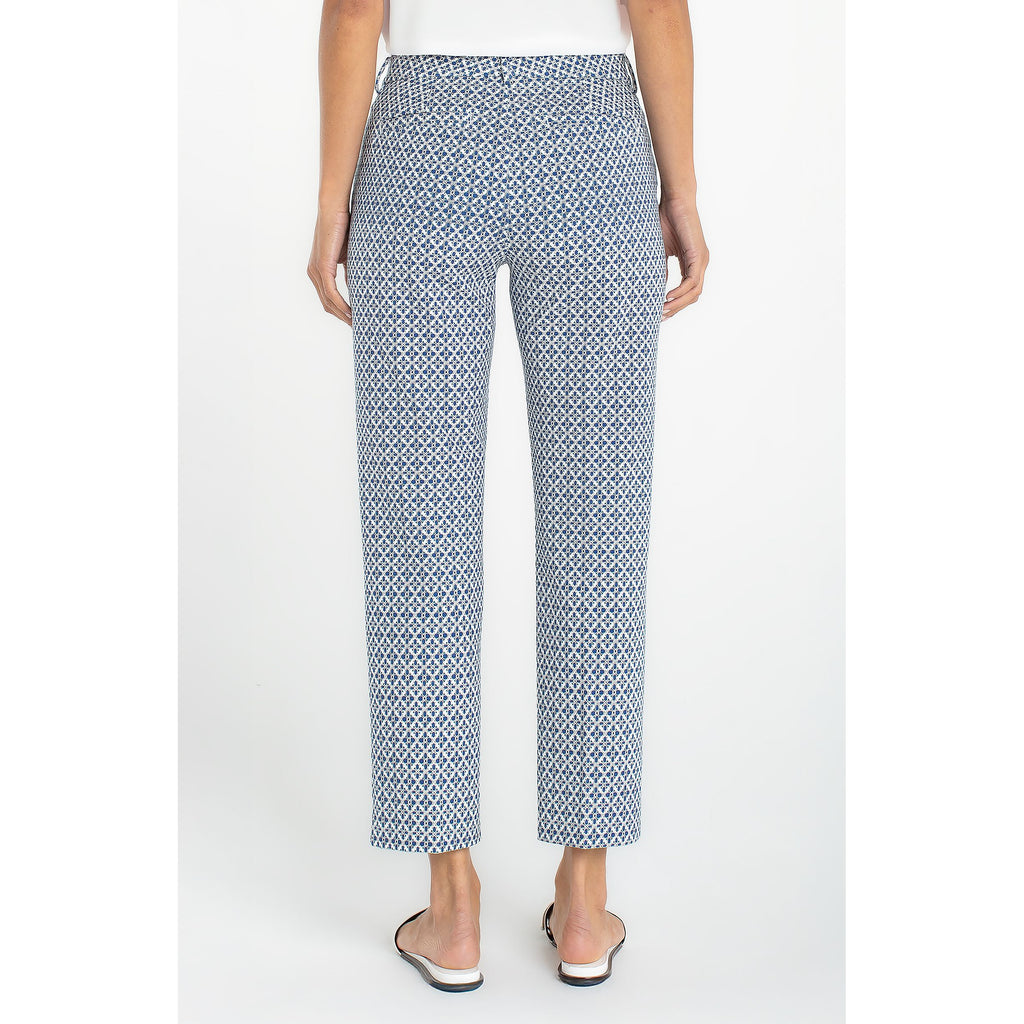 Make a statement in these fun blue and white tile-print trousers featuring a sharp tapered leg and a small side slit that brings personality to your wardrobe.