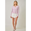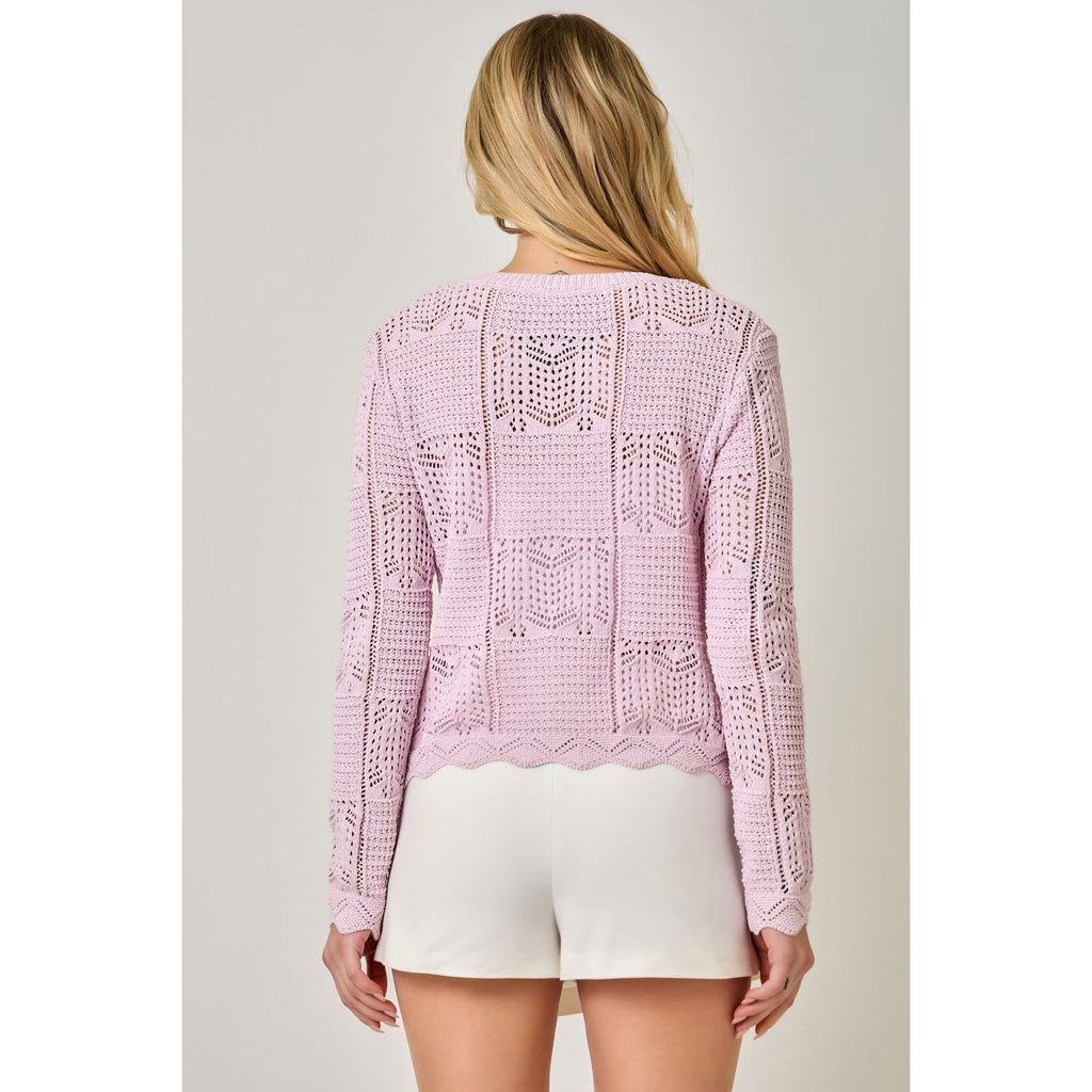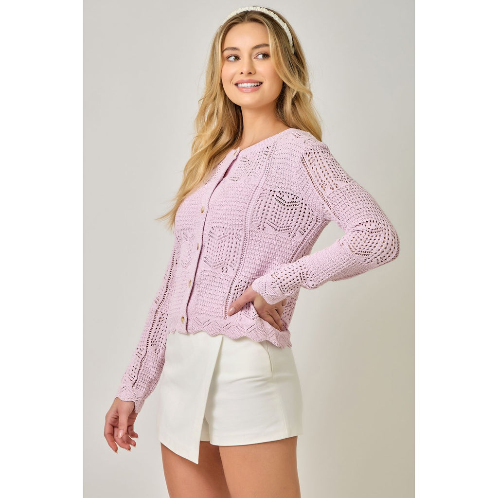 Slip into effortless elegance with this charming lavender cardigan. Featuring an intricate pointelle knit, a sweet scalloped hem, and classic button-down styling, it's the perfect layer for adding a touch of whimsy to any outfit. Long sleeves and a rounded neckline complete this cozy essential that feels as good as it looks.