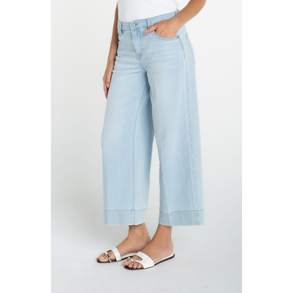 Meet your new spring obsession—these wide-leg crop jeans in a gorgeous bright denim with delightful "marine flower" embroidery adorning the side seams. The fabric is wonderfully soft and breathable with just the right amount of stretch to keep you comfortable all day. Built with classic 5-pocket construction and belt loops for timeless style. Style them solo or layer with the matching Puff Sleeve Cropped Trucker Jacket for the ultimate coordinated look.