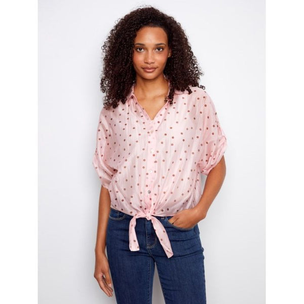 Polka Dot Front-Tie Blouse