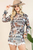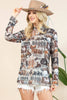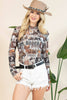 Saddle up for some serious style with this Western rodeo print mesh top! The semi-sheer fabric and long sleeves give you that effortless, laid-back vibe perfect for showing off your bold personality. Whether you're heading to a music festival, casual night out, or just want to channel your inner cowgirl, this playful piece delivers Western charm with a modern twist. Layer it over your favorite basics or wear it solo for maximum impact. Yeehaw!