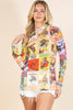 Channel your inner cowgirl with this playful vintage Western print mesh top! The semi-sheer fabric and mock neck create an effortlessly cool vibe, while long sleeves keep things modest and chic. Perfect for layering over a cami or rocking solo for that perfectly edgy look. Whether you're heading to a rodeo-themed night out or just want to add some Western flair to your everyday rotation, this piece delivers retro charm with modern attitude.