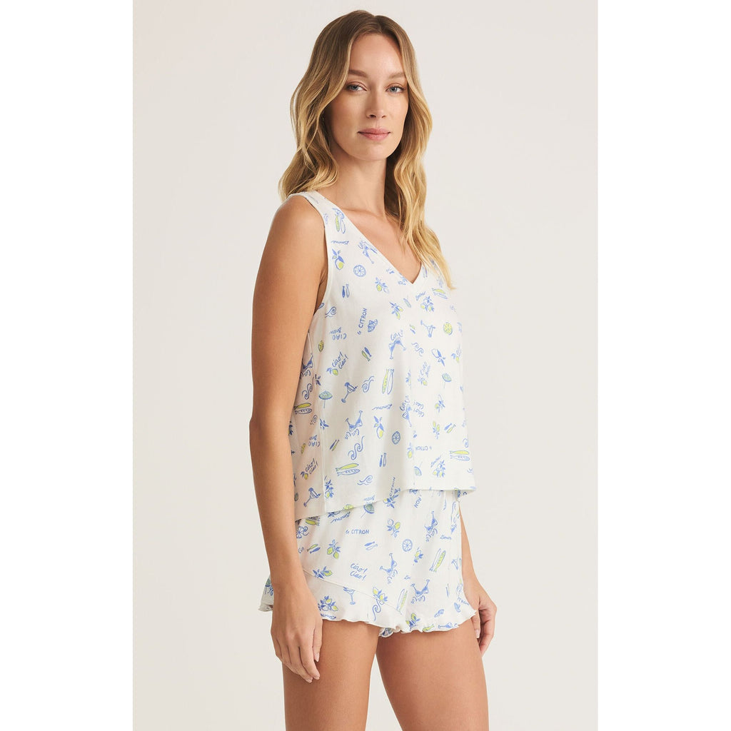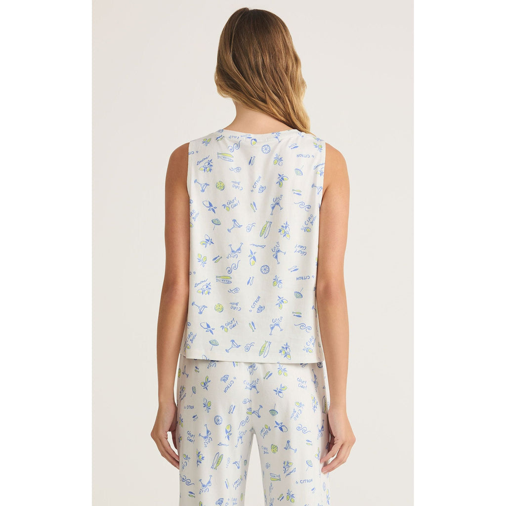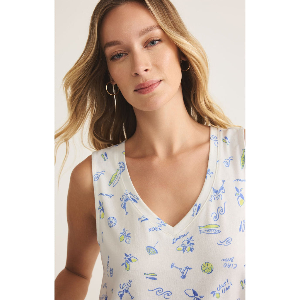 Lively, breezy and oh-so laid back, this smooth jersey top features a charming v-neck, broad straps, and an Italian-inspired design with zesty citrus motifs for a carefree yet stylish vibe. Perfect for chilling or styling, it drapes smoothly and is as cozy as it is chic. Try it with the coordinating Cia Bella Silky Jersey Shorts!