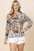 Saddle up for effortless style with this Western Print Relaxed Fit Top. Featuring a charming western print and semi-sheer mesh fabric, this piece brings a touch of cowgirl cool to your everyday rotation. The mock neck and long sleeves offer just enough coverage, while the relaxed fit keeps things comfy and breezy. Perfect for layering or wearing solo, it's your new go-to for casual days with personality.