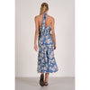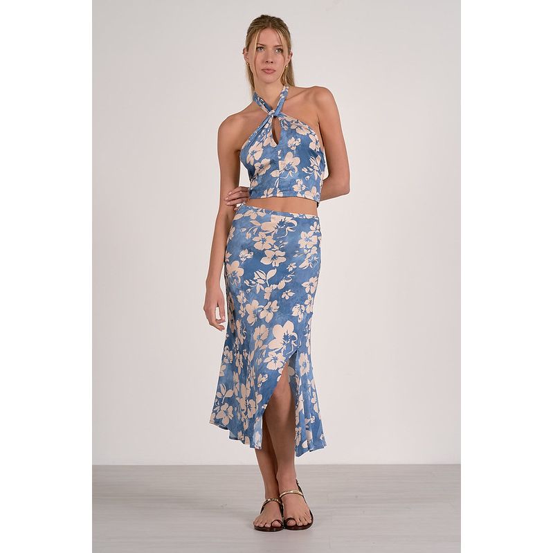 Blue Blossom Midi Skirt with Side Slit
