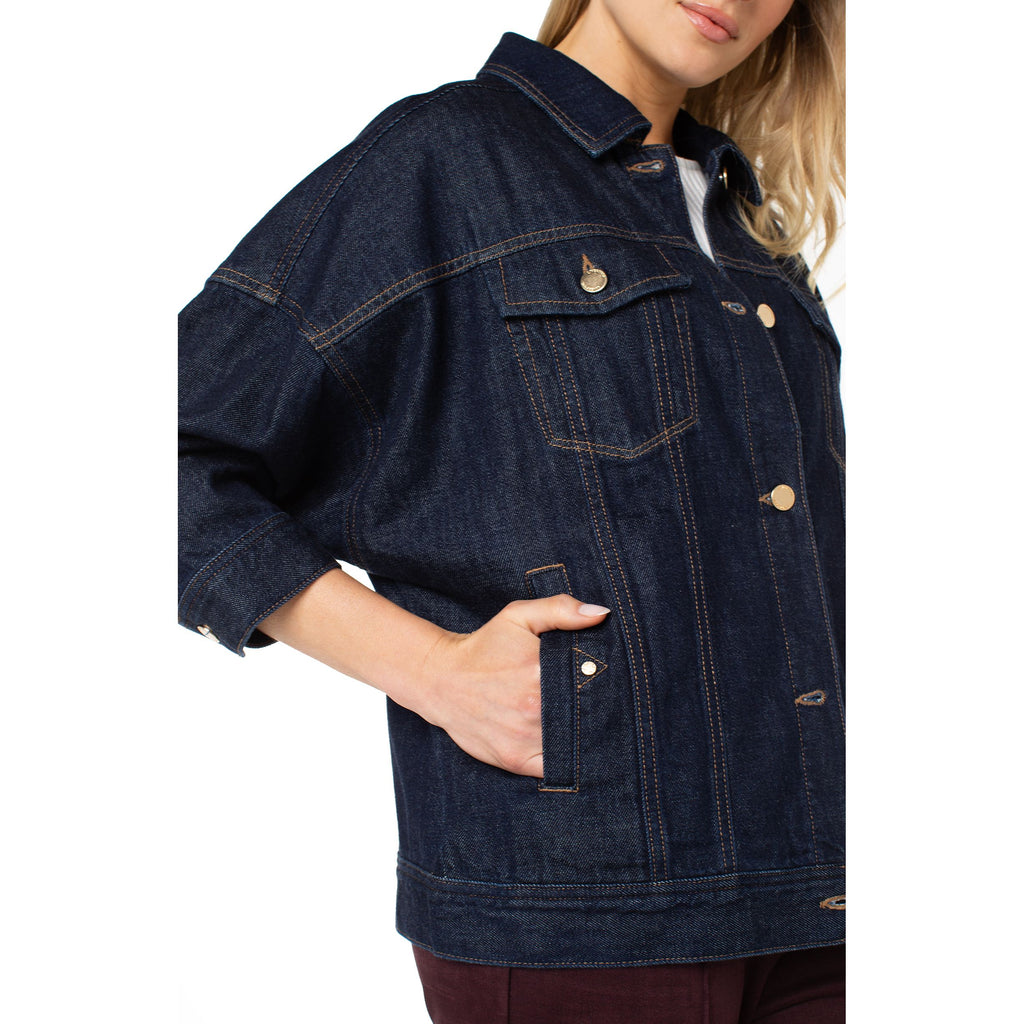 This drop-shoulder jean jacket, crafted from the softest 100% cotton denim, offers a luxurious, light texture. Featuring a refined reinterpretation of the traditional denim jacket, it serves as an elevated layering piece that adds subtle sophistication to any ensemble.