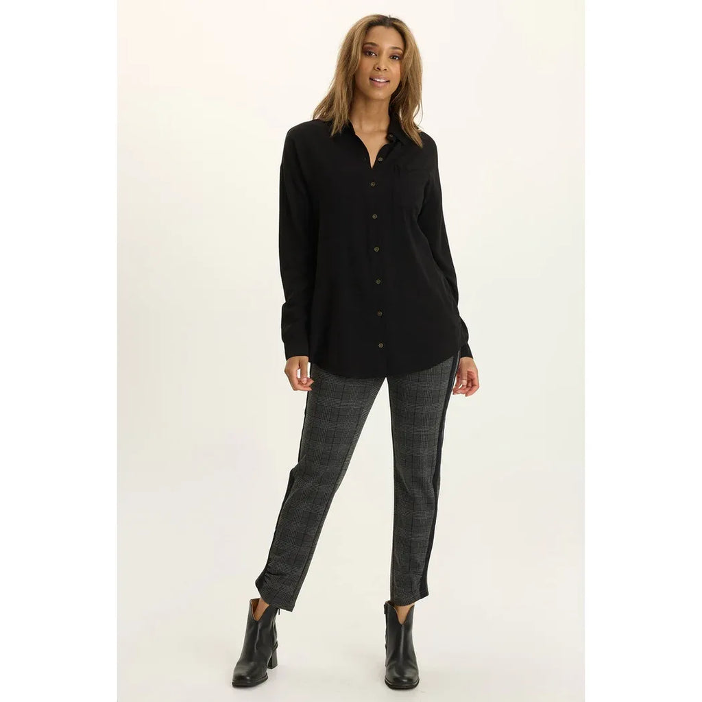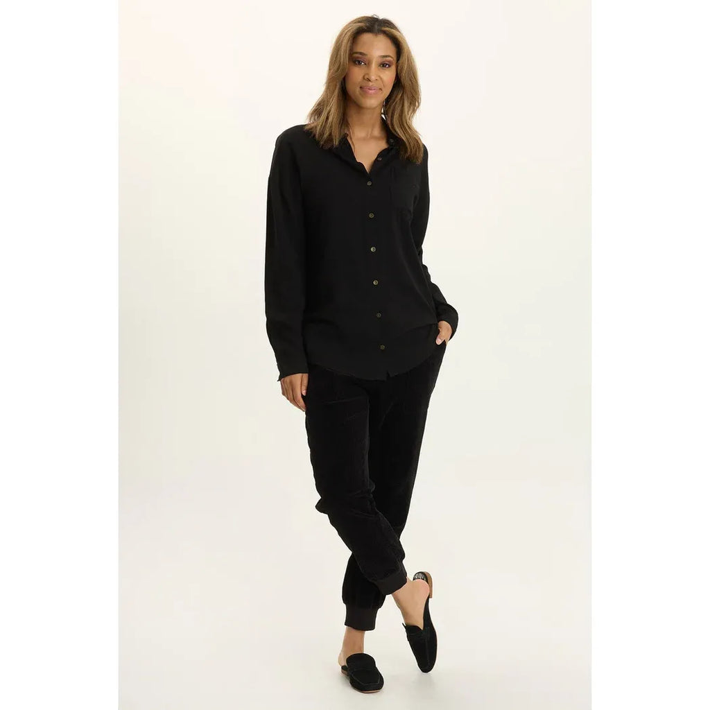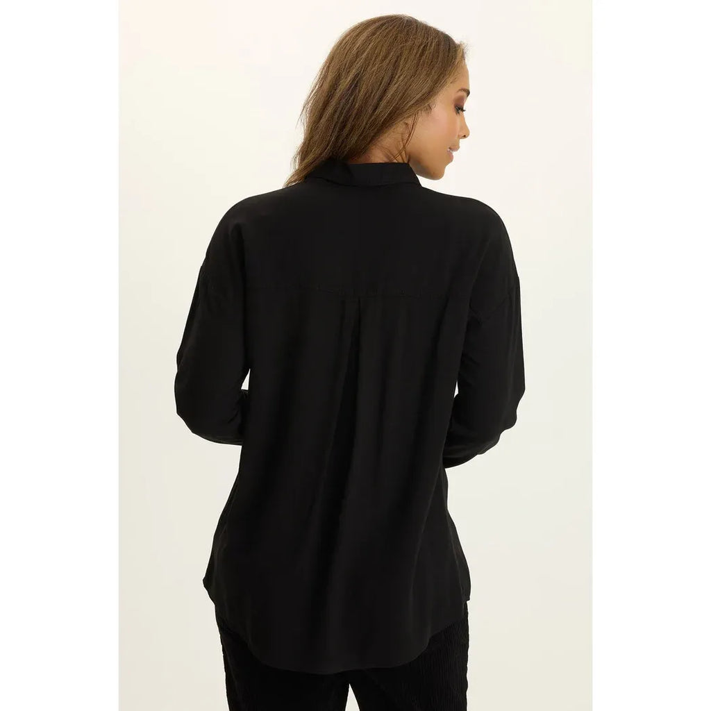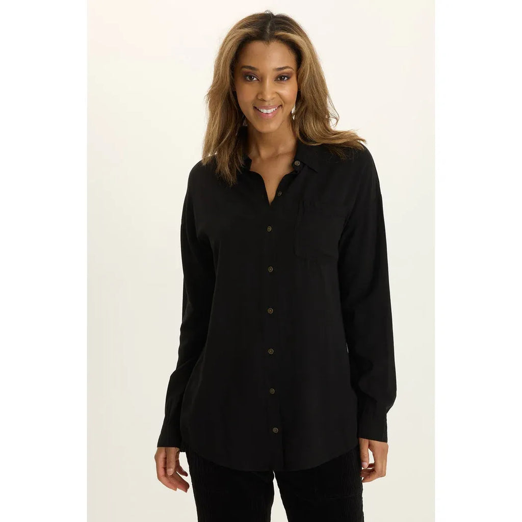 Get ready to live in this relaxed button-up that screams effortless cool. With its elongated silhouette and roomy proportions, it's designed for maximum comfort and movement. The featherlight voile fabric keeps you breezy all day long, while a functional breast pocket adds just the right touch of practicality. Dressed up or down, this staple piece is your new go-to for casual sophistication.