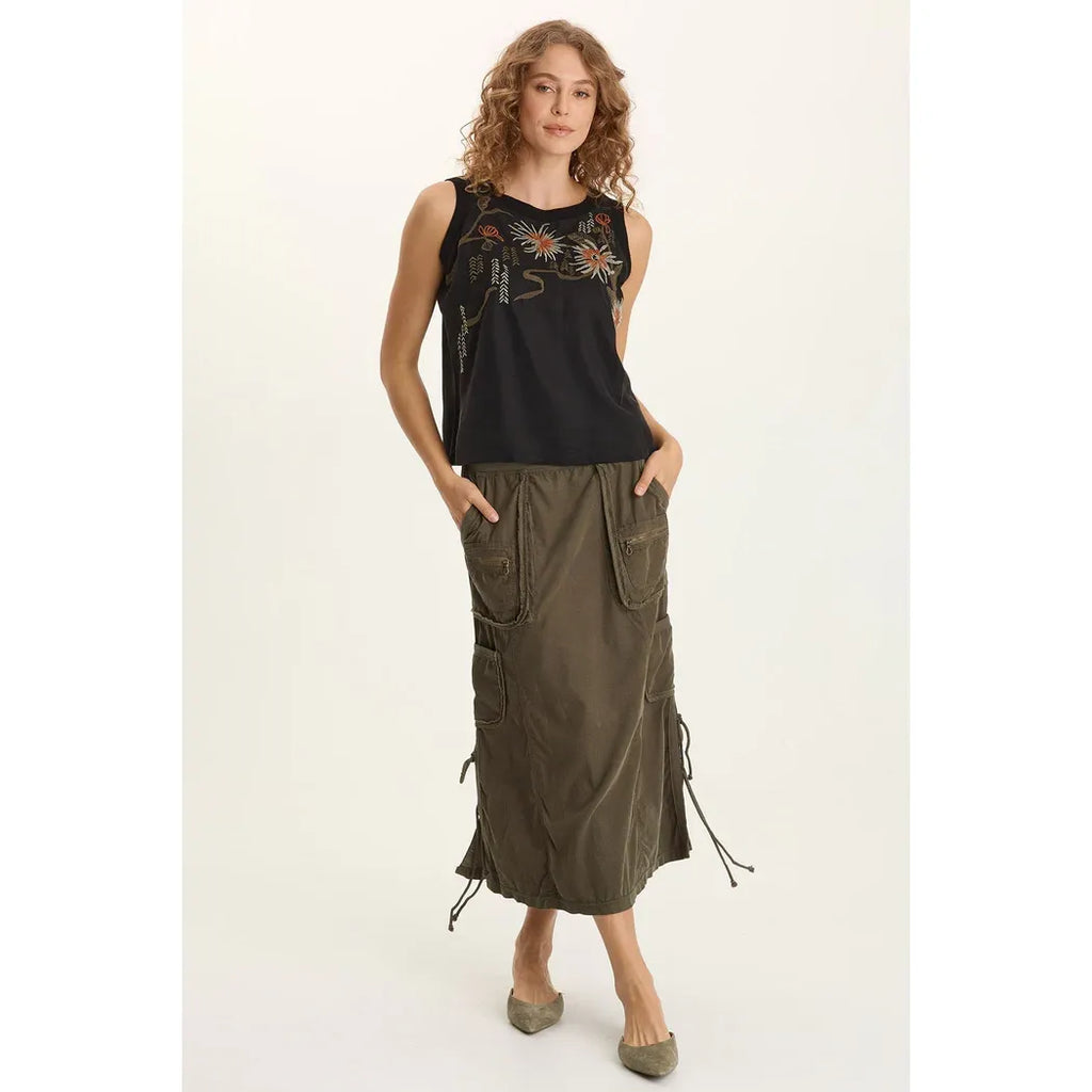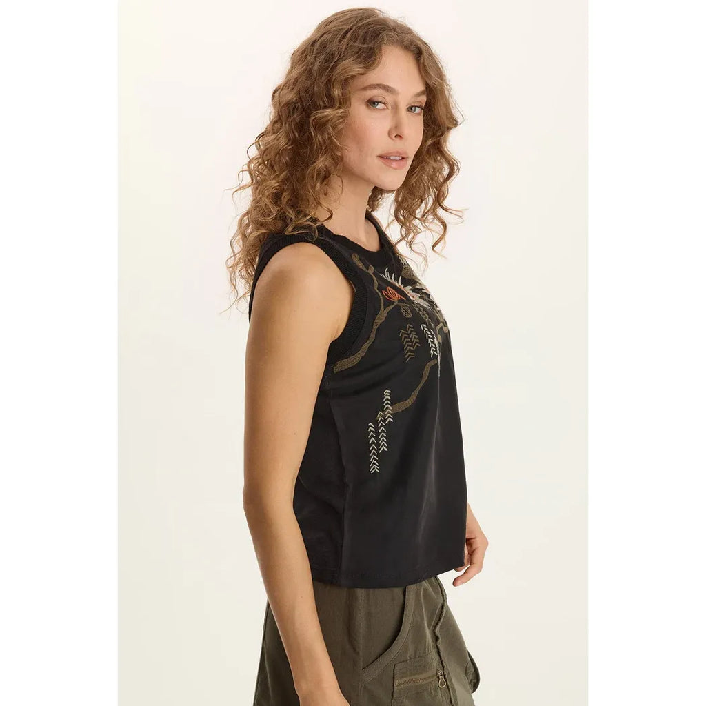 Featuring charming artisan floral embroidery, this tank adds a fresh twist to a wardrobe staple. Made from Soft Twill, its classic crew-neck design is brightened by contrasting rib trim on the sleeves and straps. A delicate ruching detail on the right shoulder brings a touch of playful motion to this curve-enhancing fit. Pairs perfectly with the matching Darri Embroidered Pull-On Jogger.